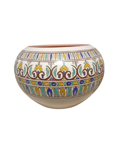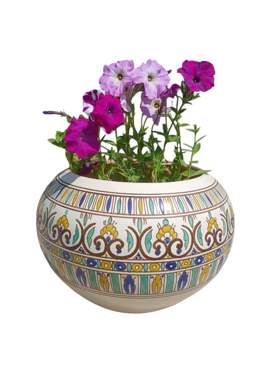 Apportez une touche d’authenticité et de raffinement à votre espace vert avec notre pot de jardin artisanal. Tourné et décoré à la main à Nabeul, Tunisie, selon un savoir-faire ancestral, ce pot en terre cuite allie esthétique, durabilité et respect de l’environnement.