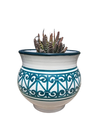 Apportez une touche d’authenticité et de raffinement à votre espace vert avec notre pot de jardin artisanal. Tourné et décoré à la main à Nabeul, Tunisie, selon un savoir-faire ancestral, ce pot en terre cuite allie esthétique, durabilité et respect de l’environnement.